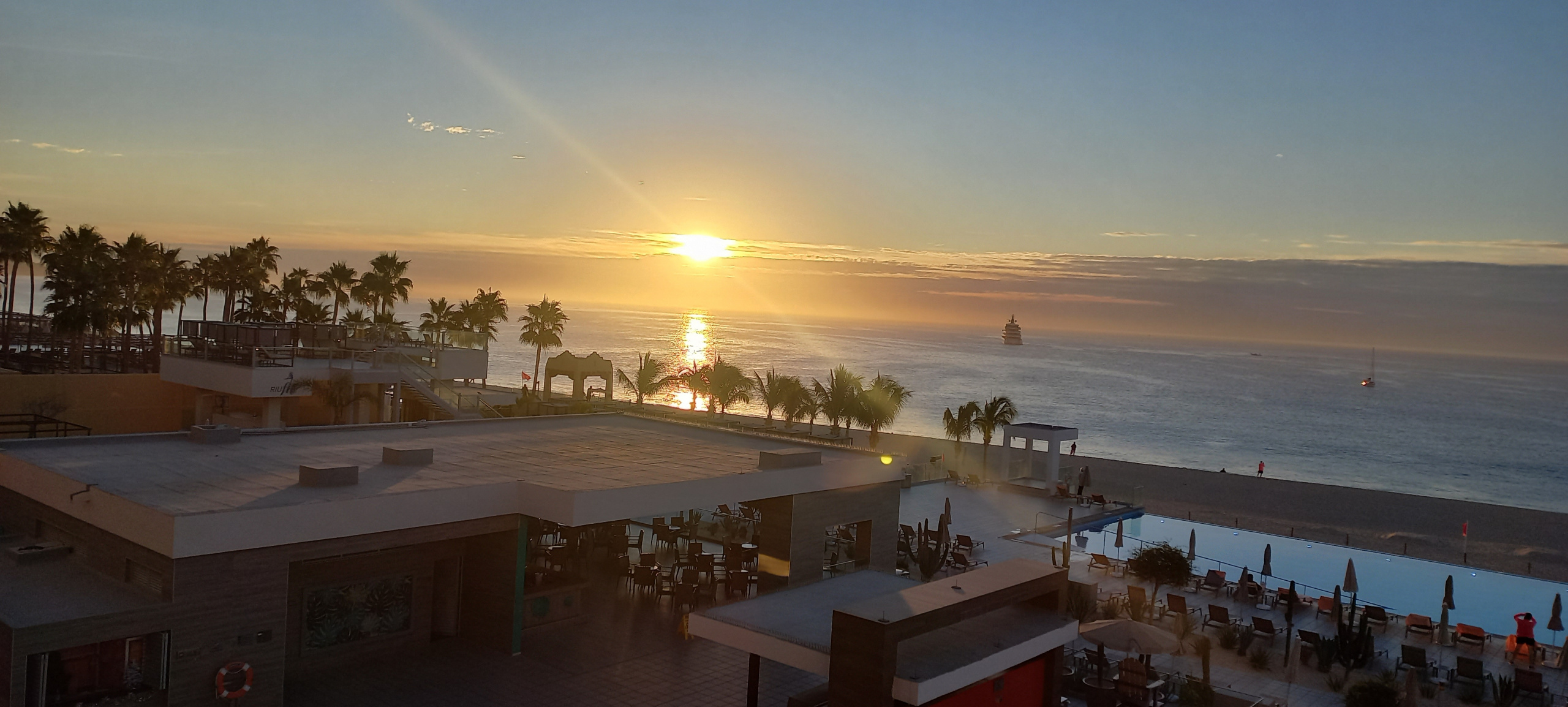 Tagsüber gibt es jede Menge Programm. Gegen späten Vormittag sorgen top DJ`s neben der Poolbar für relaxte Stimmung. Nebenan am großen Infinity-Pool, kann man im Laufe des Tage ein Stelldichein von Yachten, Seglern und Kreuzfahrtschiffen beobachten, die in der Bucht von Los Cabos vor Reede liegen. Gehen wir mal weiter zum Schwesterhotel dem „Riu Santa Fe“. Es ist im Stil eines Pueblo angelegt und auch in den so typischen ockergelben Natursteinfarben gehalten. Der großzügig gestaltete Garten mit vielen Palmen, Blumen und Rasen, bildet ein sehr einlandendes Bild. Die Infinity-Pools und die Poolbar sind ebenso ein absoluter Hingucker. Aber schaut selbst einmal..